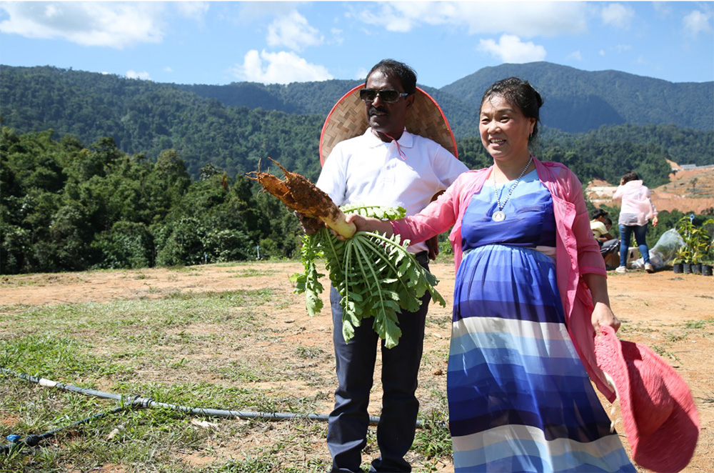 August 8, 2018 was a very important and meaningful date. With a group of more than 50 people, Bai Shi Yin Guang Bo held a grand groundbreaking ceremony at Lojing Highlands. The white radish and Pak Choy greens that were cultivated following the ceremony were highly prized items, with demand exceeding supply.