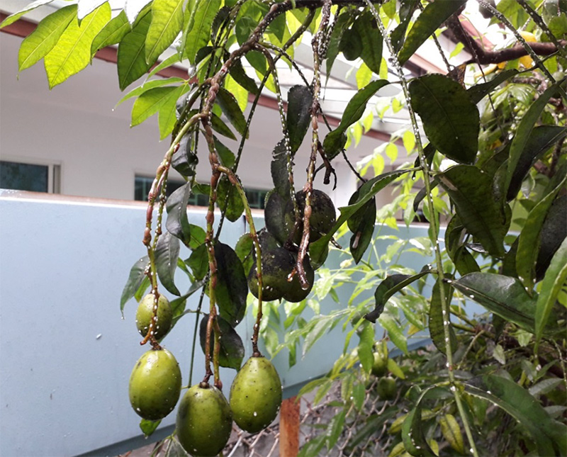 On October 31, 2018, there was a severe infestation of Scale insects on a hog plum tree, affecting its growth and making the tree limp and dull. Many of the leaves began to turn yellow and drop off while the flesh of the fruits was turning black.