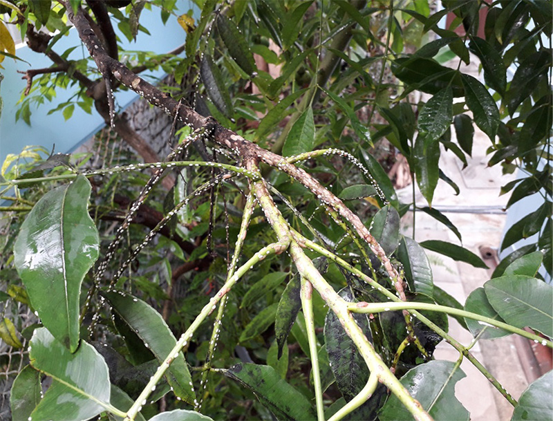 Scale insects are major pests of citrus, grapefruit and other fruit trees, attacking the leaves, branches and fruits. Male Scale insects have wings and can fly. The females and emerging larvae live on the branches, leaves or fruits, causing the branches and leaves to turn yellow and become deformed, with the leaves eventually dropping off. In severe cases, the plant die off.