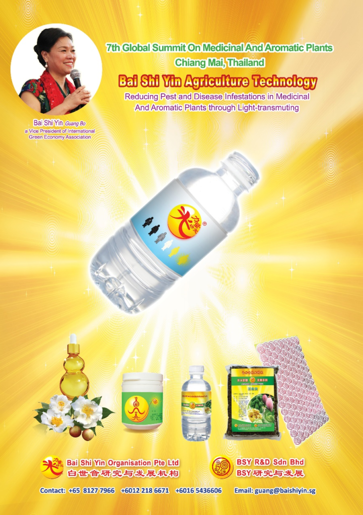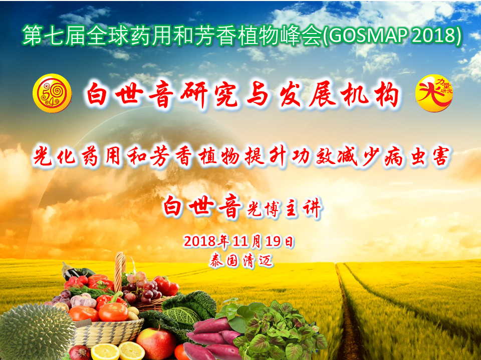 On November 19, 2018, Bai Shi Yin Guangbo was specially invited to give a keynote speech at the 7th Global Medicinal and Aromatic Plant Summit (GOSMAP 2018): using light power to sum up medicinal and aromatic plants to improve efficacy and reduce pests and diseases.