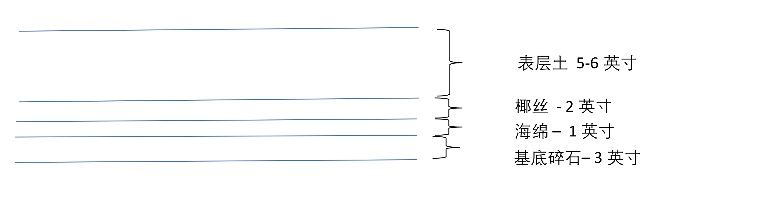 2.海绵1英寸厚。这将碎石层与表层土壤层分开。它也允许水垂直通过它上面的椰丝。