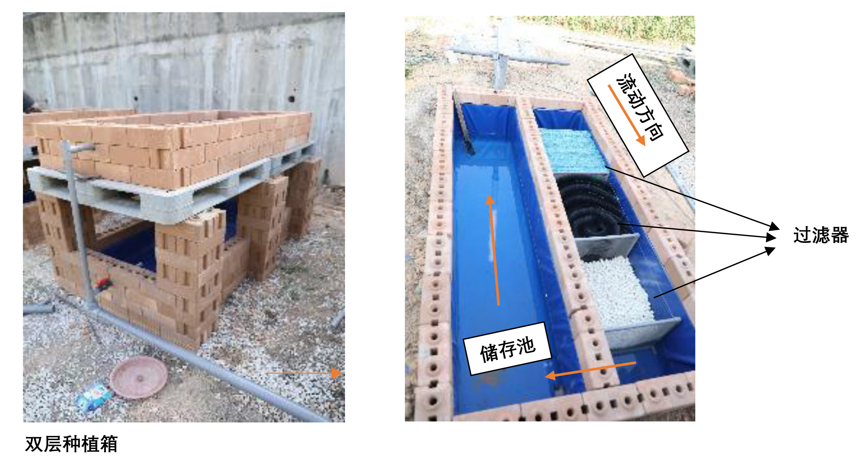 1.通过三级过滤系统后,水从大型水库连续泵入到高处。从那里,水被重力压力头挤出到一个管道系统,通过砾石床并返回到水库。因此不需要任何手动浇水。重力压力排除了使用大型泵的需要来将水循环到整个系统,从而降低了运行成本。