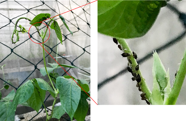 新加坡的一个无农药农场,蚜虫(Aphis fabae)严重侵染了长豆的生长环境。虽然农民尝试了各种自然控制方法,但情况没有改善。收成受到严重影响,植物并不健康。
