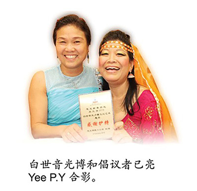 白世音文化艺术是由一位划时代的光力量研究者、白世音智慧光科技发明者白世音光博兼院长,于2012年4月11日成立。同时非常感恩已亮Yee Peck Yoke的积极倡议。白世音把这个想法加以延伸,将其作为促进和传播优秀的中国传统文化的平台,并通过艺术释放正能量总和光力量给观众。值得一提的是,白世音光博有意将这个项目推广年轻一代身上,为观众和表演者,弘扬中华文化和欣赏艺术同时完成。表演团从开始创立,到展现其成果,白世音光博无疑是一位音乐和艺术的伯乐,具有辨识和发展他人才华的能力,激发白世音文化艺术成立了两个主要中心点,一个在新加坡,另一个在马来西亚怡保。